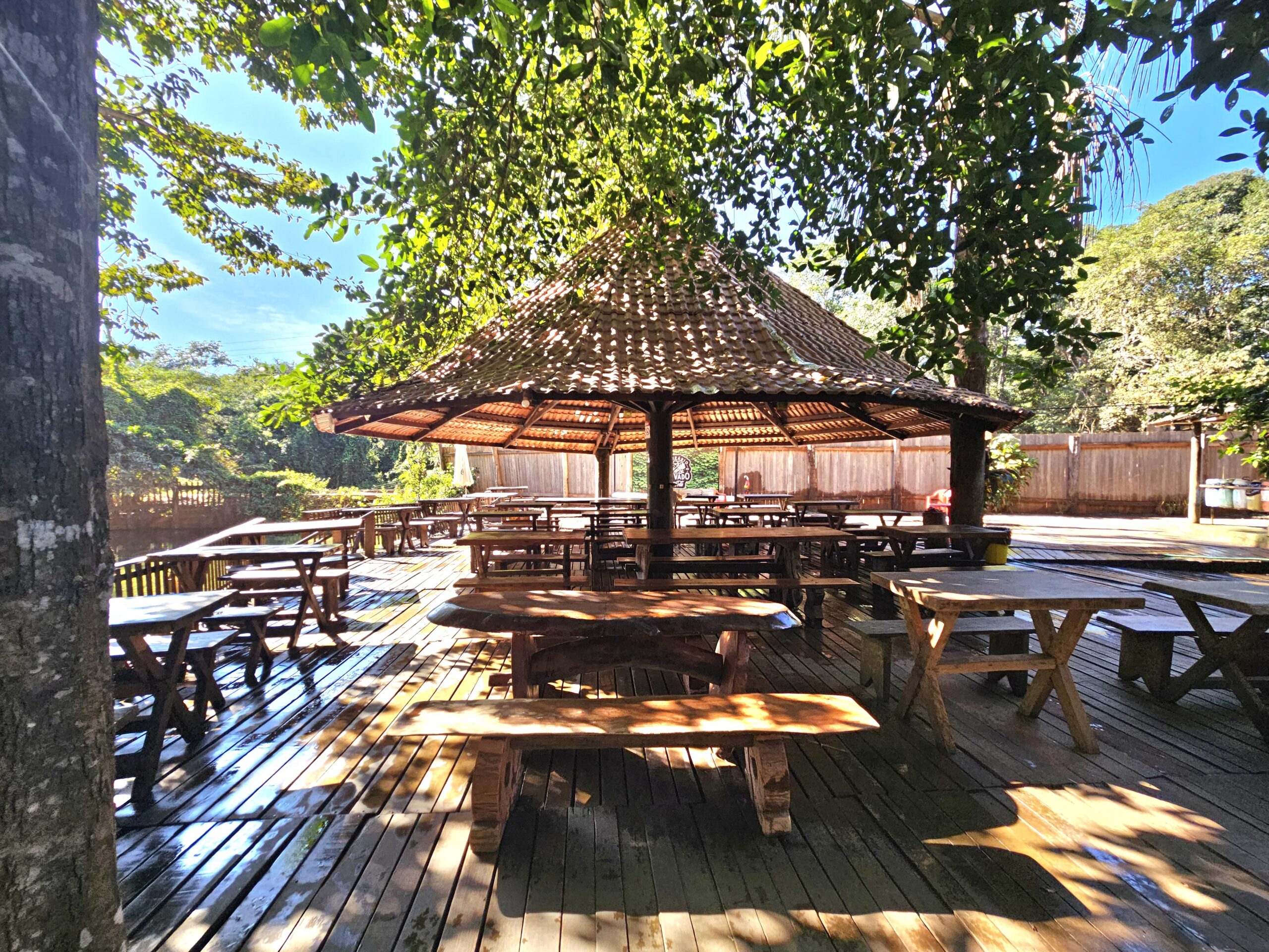 O balneário conta com um bar e restaurante, que oferece bebidas, petiscos variados e, mediante reserva, um delicioso almoço servido das 11h às 14h.